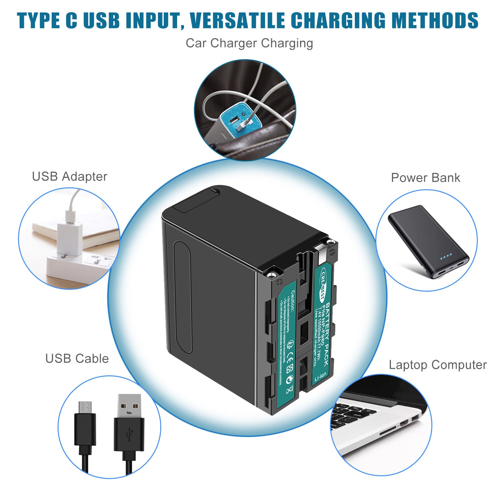- 2 volledig compatibele extra batterijen: twee vervangende batterijen met een capaciteit van 7.4V 10500mAh. ultrahoge-capaciteit vervangende batterij voor SONY NP-F930, NP-F950, NP-F960, NP-F970, NP-F970D, NP-F975, NP-F980, NP-F990, 100% compatibel als vervanging van uw originele batterij.