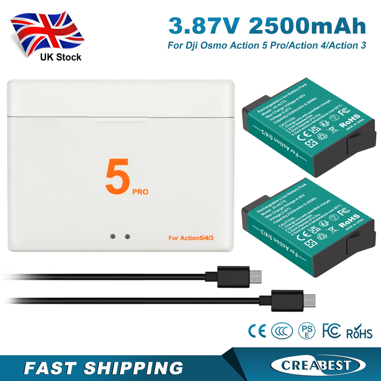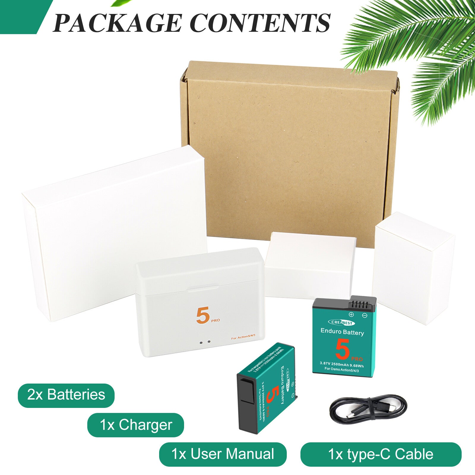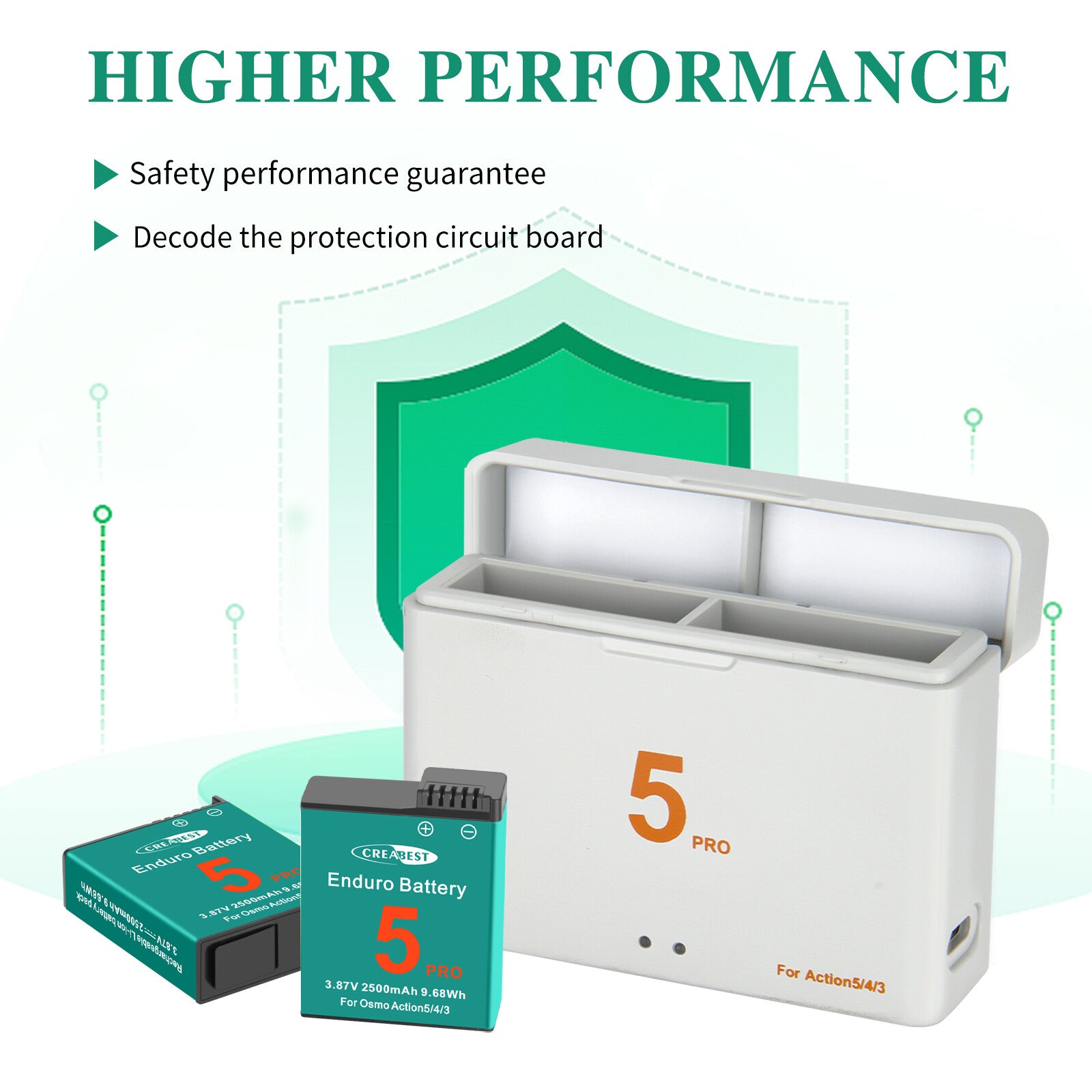 - 2 volledig compatibele hulpbatterijen: 2 vervangende batterijen met een capaciteit van 3.87V, 2500mAh, vervangingsbatterij met zeer hoge capaciteit voor DJI Osmo Action. 100% compatibel bij vervanging van uw originele batterij